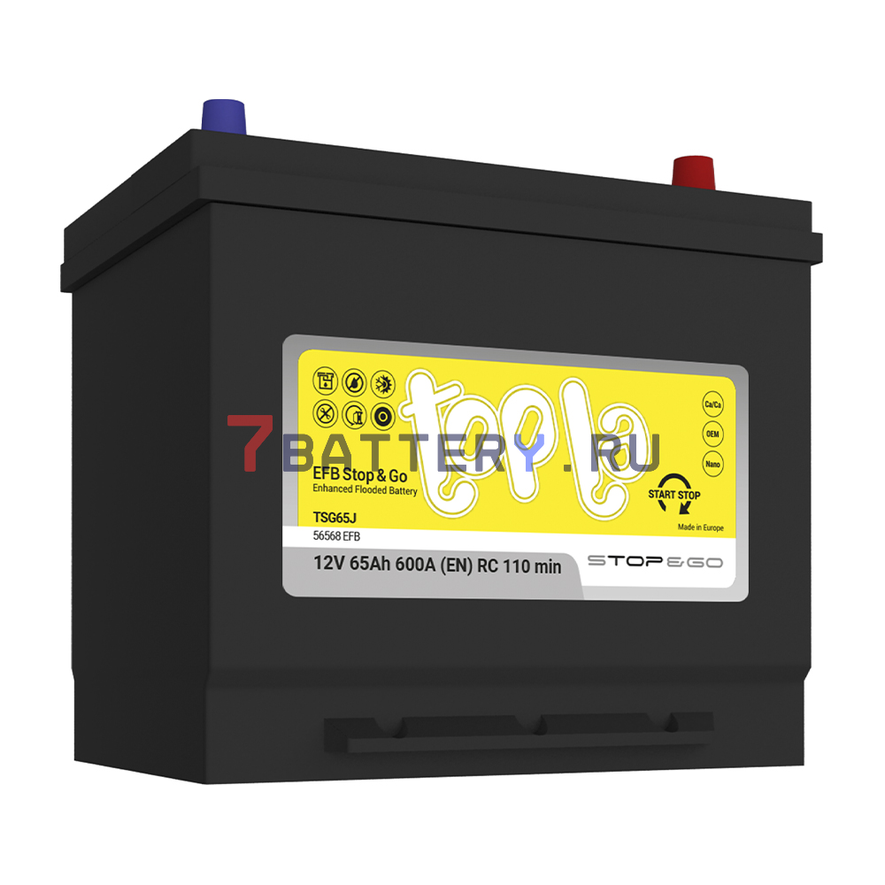 Аккумулятор TOPLA EFB Stop&Go 65 Ач — автомобильный АКБ, специально созданный для автомобилей с системой Start-Stop. Выдерживает колоссальные нагрузки и критически низкие температуры, что делает его одним из самых лучших EFB-аккумуляторов в мире. Усиленные PUNCH-пластины не боятся вибраций и надёжно защищены от осыпания, а технология Magic Eye позволяет следить за уровнем и состоянием электролита без вскрытия корпуса.